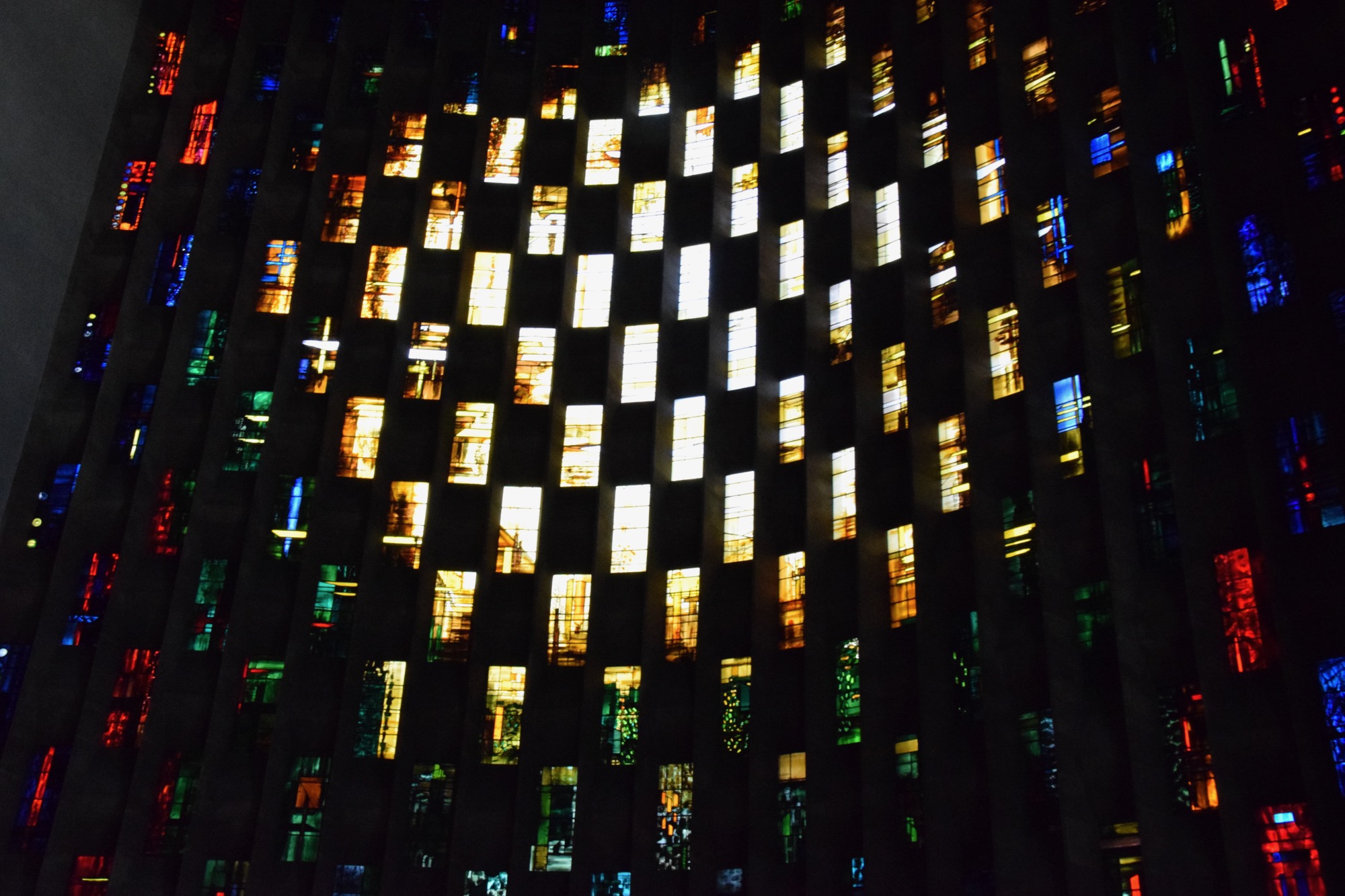 Alright, so I will accept that not everyone will ever agree with me that concrete can be beautiful, but it’s certainly impressive. And exploring it is rewarding, from the hand-engraved Biblical quotes on the walls to the Chapter House, flooded with light. (Next to the Cathedral is the Chapel of Unity, for the use of all Christian denominations in the city, and with beautiful symbolic tiling on the floor, but they seem to keep having to fence that off because the slates keep falling down…)