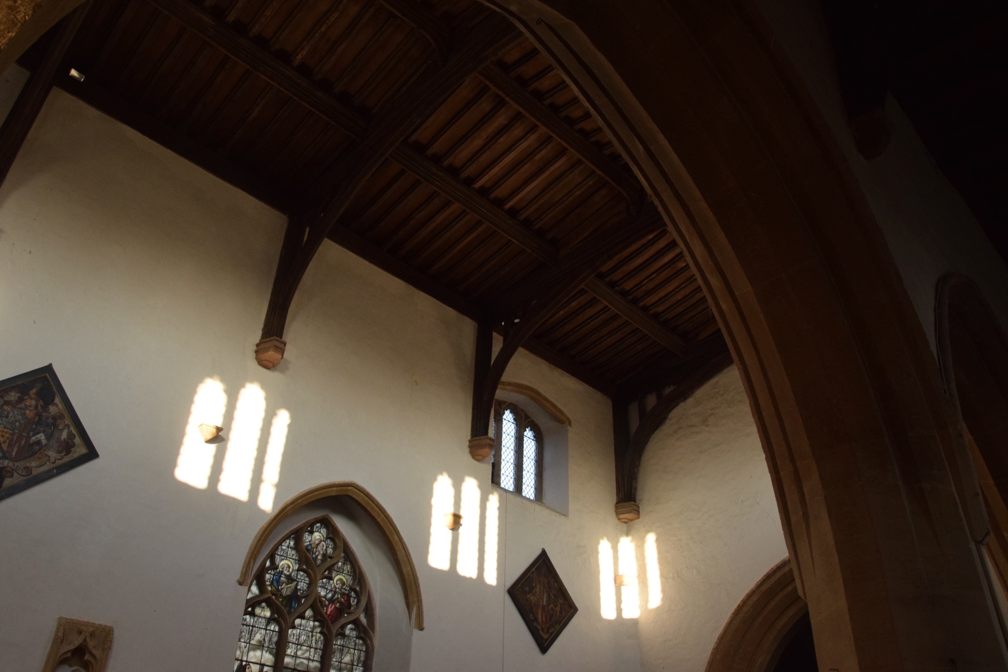 Done (fairly quickly) with the town village, we wandered out to the east, hoping to find something. Anything. Eventually the houses got older, and thatched-roofier, and we saw a signpost for the church, which was probably, we thought, a good sign of something of historical interest. It was indeed, as the church dated from c.1220. I’m not going to quote you the entirety of the little yellow guide pamphlet to St Mary’s Church, but it’s worth picking up if you visit. A few fun facts: