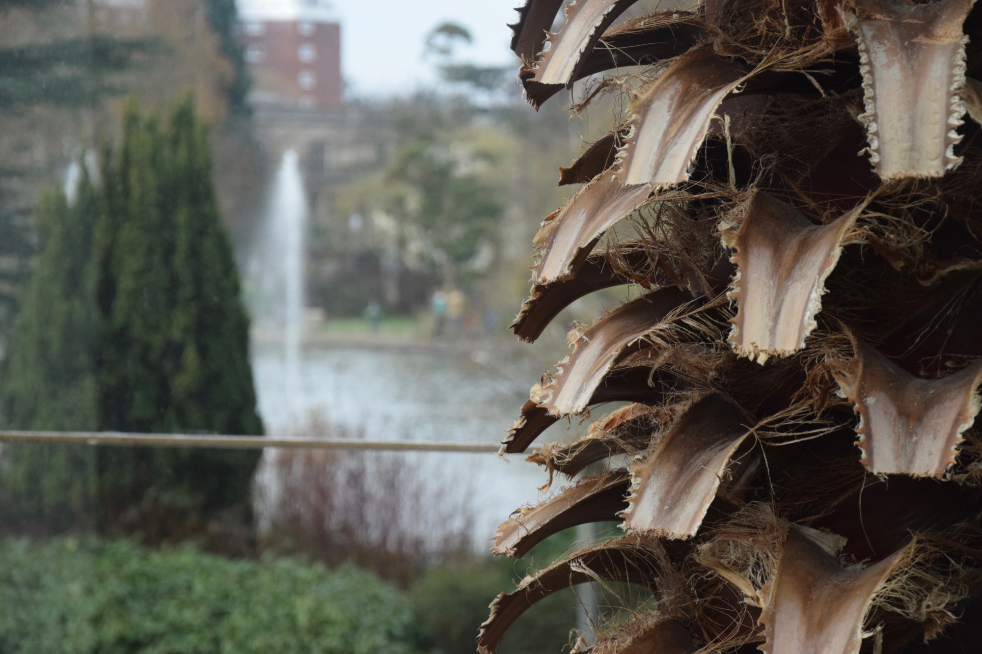 On the western side is the glasshouse. Compared to the ones at Kew, it’s not particularly impressive, but it probably beats out the ones in Oxford. As well as a variety of exotic plants, it has a stream running through it (you’re asked not to drop coins in because they upset the fish, a warning heartily ignored by legions of past visitors). There is also a display beehive, which you are invited to open, to see… a picture of bees in a hive, presumably something to do with the fact that it’s winter. With this, and the café, and the fact that the restaurant next to the glasshouse had also closed for refurbishment, I got the sense that we’d come at the wrong time of year.