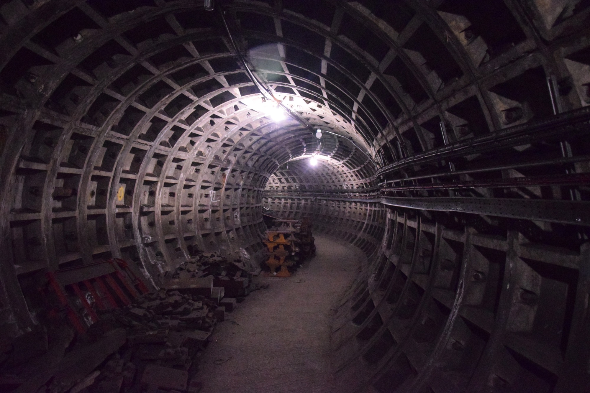 We left the closed-off bits of the station soon after and headed into the public spaces. But there was still more to show us, in darkened, undecorated tunnels. One of these was the ventilation shaft for the Northern line; we had the (frankly, scary) view through a grille in the floor down to the station, before walking to the other end and seeing the huge shaft that lets in air (and apparently reaches almost to the height of Nelson’s toes in the square across the road, though is well-hidden from the street. We were also taken into a construction tunnel, which was very #aesthetic (see photos).