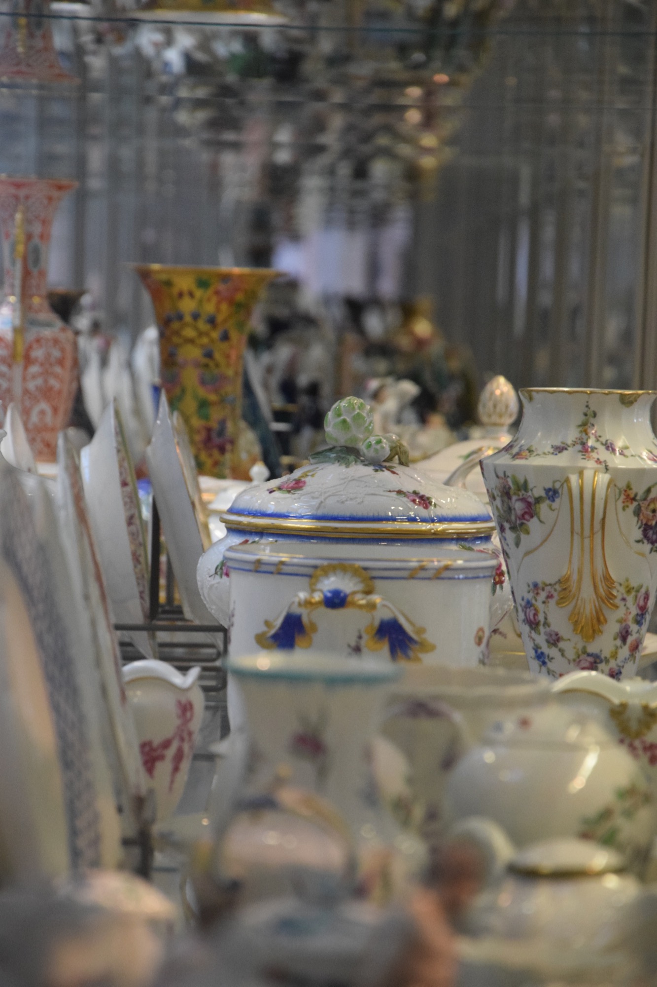I decided to try the very top floor, on the assumption that that would be the quietest part of the museum. That holds two collections: the furniture gallery, and the porcelain galleries. My preference was for the former: there are various displays explaining intricate techniques for making the objects that you really can’t believe anyone can be bothered to do by hand. The porcelain galleries, meanwhile, are impressive, but somewhat overwhelming, with long floor-to-near-ceiling glass cases filled with chinaware in the middle of the rooms, and down the sides. It’s still worth a look, though, if for no other reason than the view down into the entrance hall from the central room (unless you’re scared of heights, of course). There’s a special exhibition room too, which was… well, to be honest, kind of grim, being made up as it was of pottery models of dead animals, but, hey, if that’s your thing…